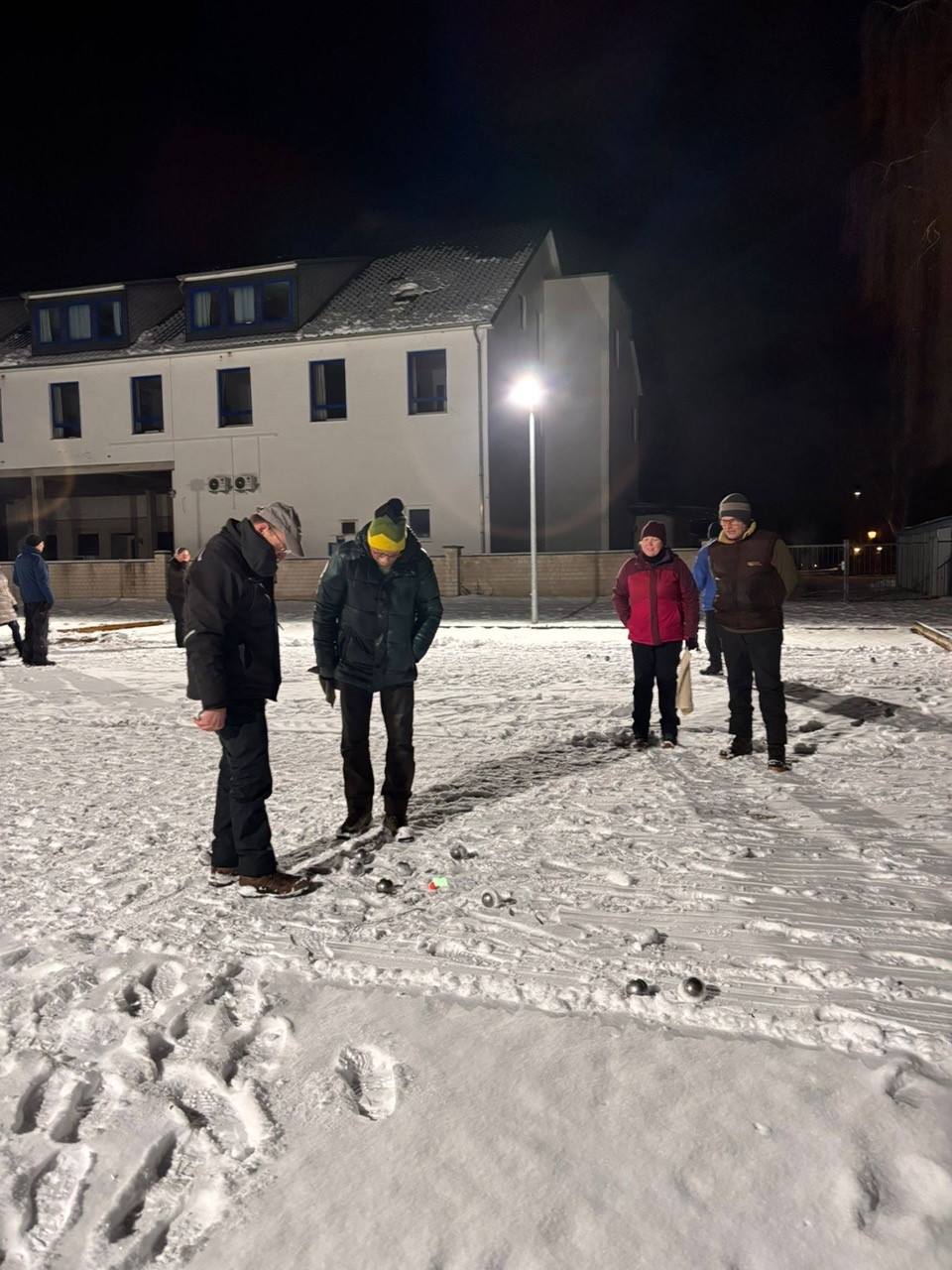 Am Donnerstag trafen sich 12 SpielerInnen zur ersten Runde Eisboule im Jahr 2026. die Bahnen war trotz Schnee spielbereit und alle freuten sich auf den Abend in der Winterlandschaft. Die Stimmung war wunderbar und zum aufwärmen in den Pausen gab es heiße Getränke und Bratwurst.
