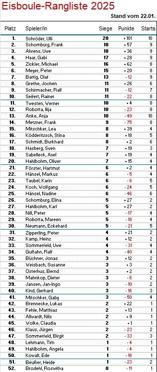 Am Donnerstag Abend trafen sich um 18 Uhr 24 SpielerInnen bei klarem Wetter und leichten Minus Temperaturen am Erbenholz in Rethen. Die Plätze waren hart gefroren, aber ansonsten gut bespielbar. Mit heißem Glühwein und exzellenten Bratwürstchen sorgte Alfred Ködderitzsch wieder einmal für die perfekte Verpflegung. So war die Stimmung wieder einmal klasse obwohl es von Runde zu Runde kälter wurde.