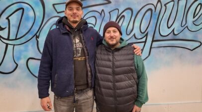 Der Bürgermeister der Stadt Ahlen Benedikt Ruhmöller und der Vorsitzenden des Pètanqueclubs „la Diffèrence“ Ahlen e.V bei der Begrüßung